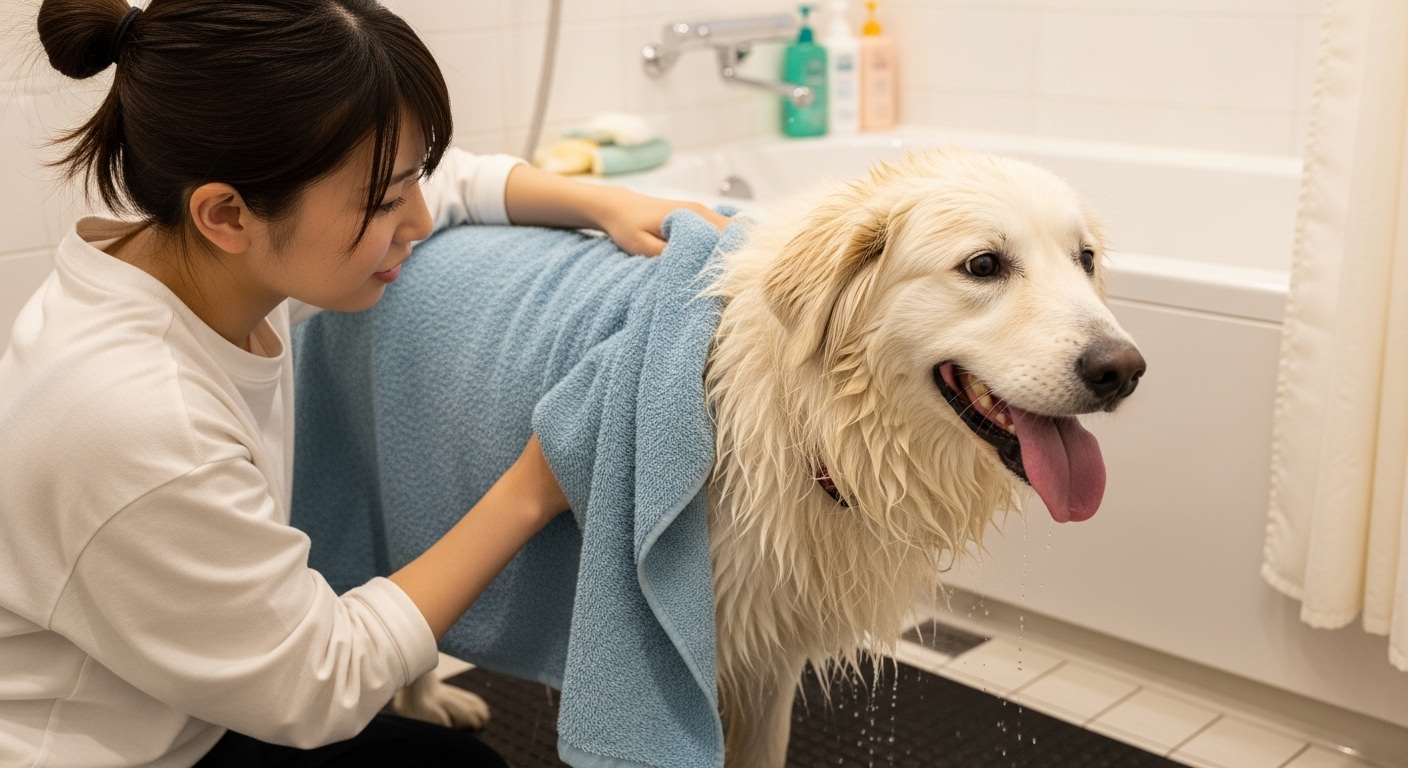 ペット専用の吸水タオルを使うと、シャンプー後のお手入れが劇的に楽になります。