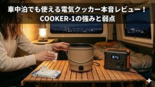 キャンプ 車中泊でも使えるNESTOUT電気クッカー本音レビュー!COOKER-1の強みと弱点 エレコムのアウトドア用電気クッカー「NESTOUT COOKER-1」のレビュー!500Wの低電力で本当に1.5合の美味しいご飯は炊けるのか?車中泊でのメリットや、「内釜が外せない」という致命的なデメリットとその対策まで徹底解説。ポタ電キャンパー必見です! 2026.03.13 キャンプ