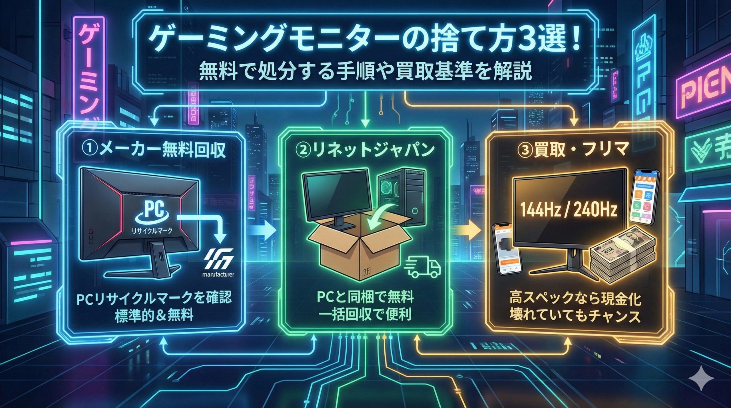 ゲーミングモニターの捨て方3選!無料で処分する手順や買取基準を解説